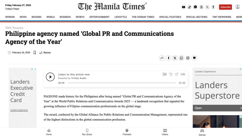 “Brandplay’s Agency of the Year win is demonstrates what happens when talent, clear thinking, and values driven leadership come together. Each agency in the network is encouraged to lead in its own space, and Brandplay’s performance this year shows the strength of that model,” PageOne Group President Vonj Tingson said.